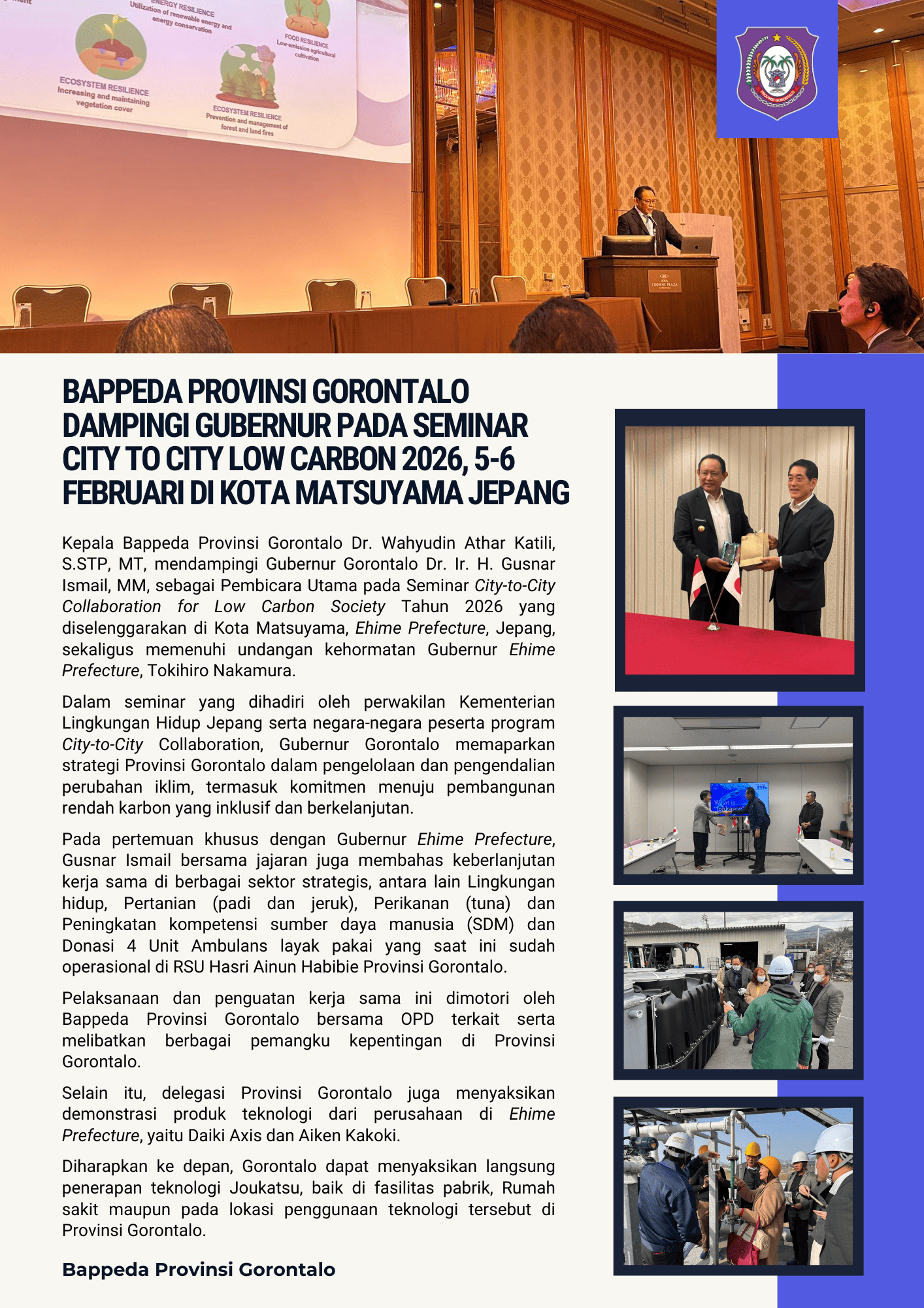 Bappeda Provinsi Gorontalo dampingi Gubernur pada seminar City-to-City Low Carbon, Matsuyama-Ehime, Jepang