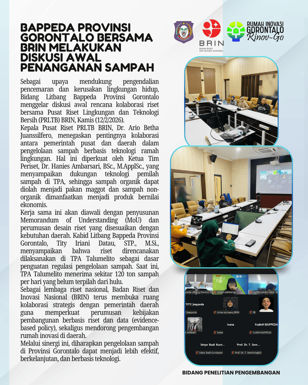 Bappeda Provinsi Gorontalo dan BRIN Diskusi awal penanganan sampah